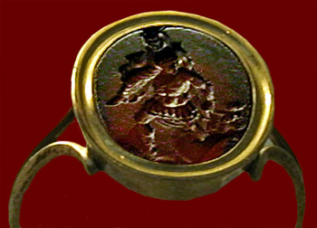sard intaglio gold ring; Roman, c. 50-150 CE