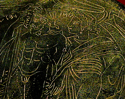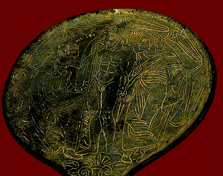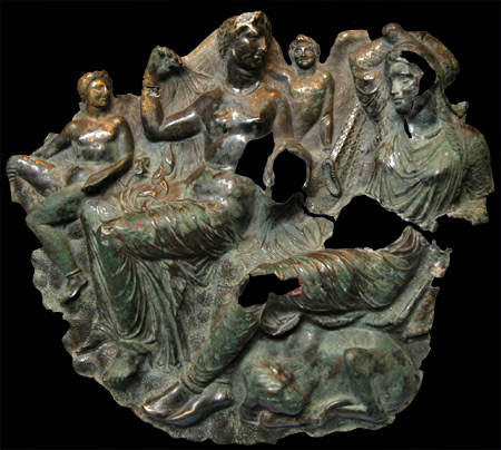 repoussé bronze relief, perhaps a mirror cover; Greek, c. 320 BCE