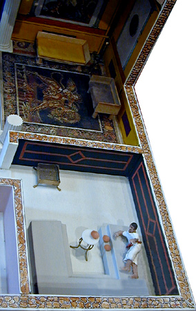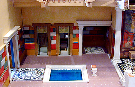 The model is a composite of structures and decor found in houses on the Bay of Naples in the first century CE.