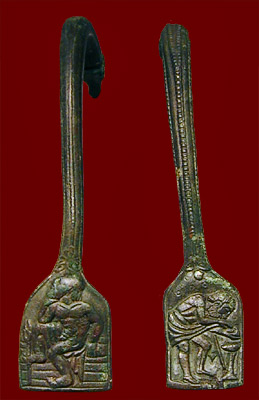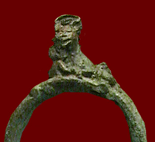 This sistrum, allegedly found in the Tiber River at Rome, was probably used by a priest or priestess of Isis. The