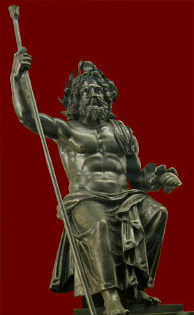 The god is seated on a throne; he wears a wreath and holds a scepter and a thunderbolt.
