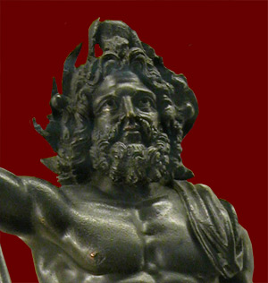 necklace and bare torso. Standing on his left is his wife Uni (Hera, Juno), wearing a diadem