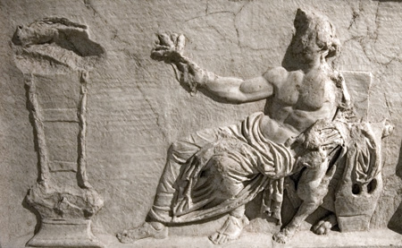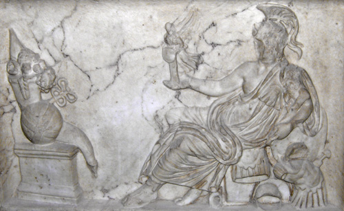 This altar was built by the freedman P. Perelius Hedulus in a sacred precinct on his private property; Hedulus is shown here sacrificing (this fourth side of the altar is carved less elegantly than the other three sides, indicating that it may have been done locally). The first side depicts