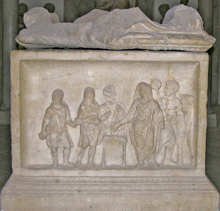 According to the inscription, Gaius Julius Saturninus and Lucilla Procula set up this beautifully carved