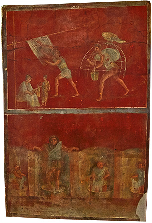 fresco from a fuller's workshop, Pompeii region VI, insula 8, building 20, first century CE