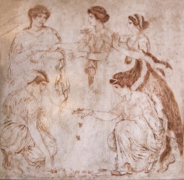 kill her children; the two boys are playing knucklebones while their paedagogus looks on.
