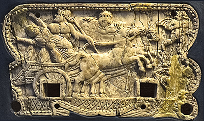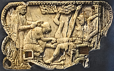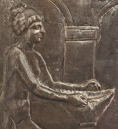 ivory relief showing childbirth, Roman, Region I Insula 2 in Pompeii, first century CE