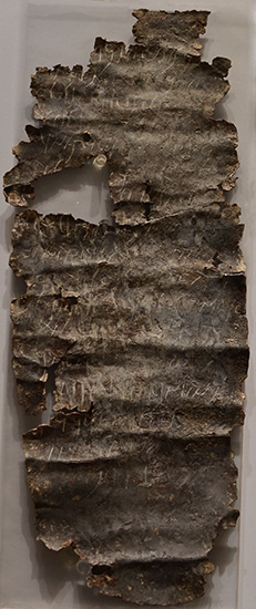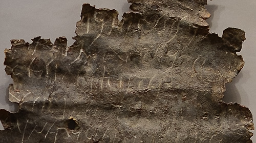 unrolled lead curse tablet with writing, Roman