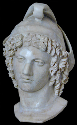The cap and elaborately curled hair suggest Attis, the consort of the goddess Cybele.