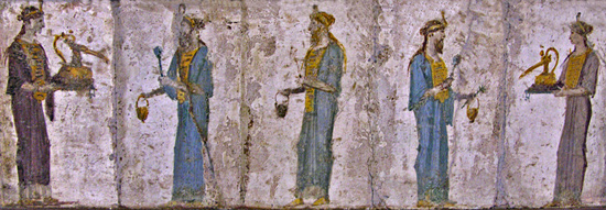 fresco with a procession of priests and priestesses of Isis, from Stabiae, first century CE;