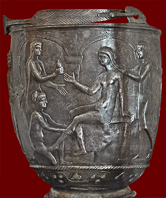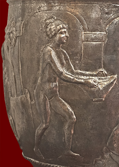 silver bucket (situla) with engraved scene, Roman, early third century CE