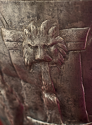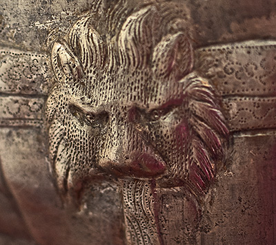 lion's head fountain on the back of the bucket.
