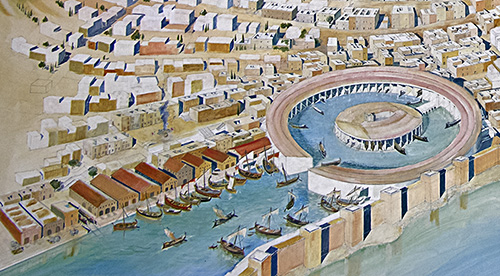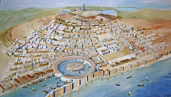 reconstruction drawing of Byrsa Hill in ancient Carthage, modern;