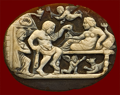 sardonyx cameo with erotic scene, late Hellenistic or Roman, first cenntury BCE - first century CE;