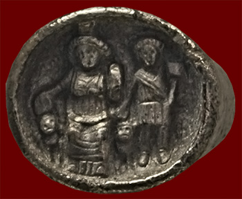 silver ring with engraved figures of Cybele and Attis, Roman, first-second century CE, from Nacrasa, Asia Minor;