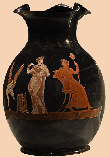 red-figure wine jug (oinochoe), Attic Greek, late classical period, mid-fourth century BCE;
