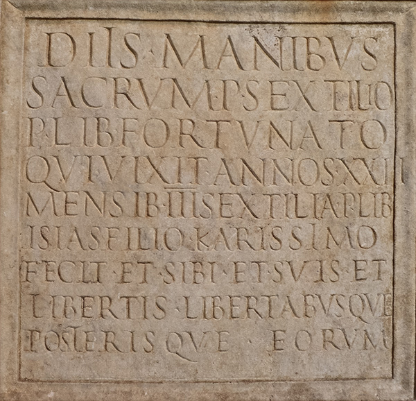 inscription, the freedwoman Sextilia Isias set up this monument for her