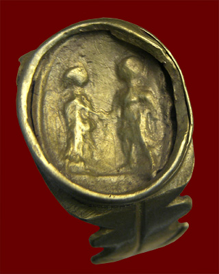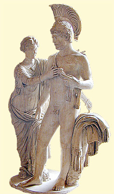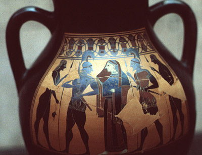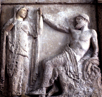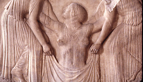 from Melos: Orestes and Pylades find Electra mourning at Agamemnon's tomb;