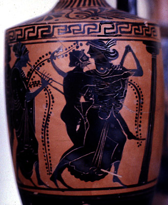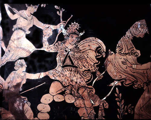 vase with incised scene of maenads killing Orpheus or Pentheus