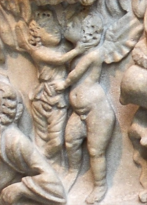 coins. The group has extensive restorations by the eighteenth-century Italian sculptor Vincenzo Pacetti--the legs, feet, neck, and arms of Bacchus and and the feet and arms of Spes; the head of Bacchus is ancient but does not belong to this statue group.