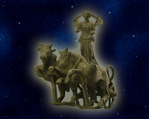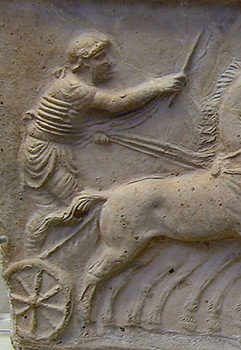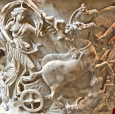 Aurora, the goddess of the dawn, drives a two-horse chariot through the sky.