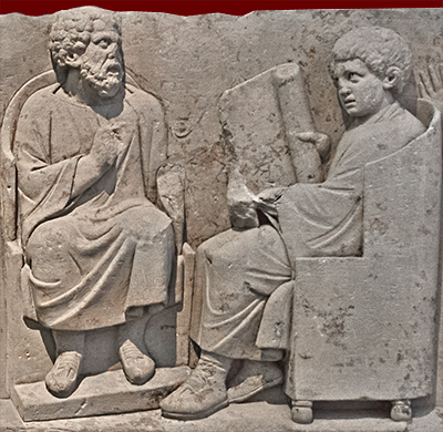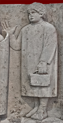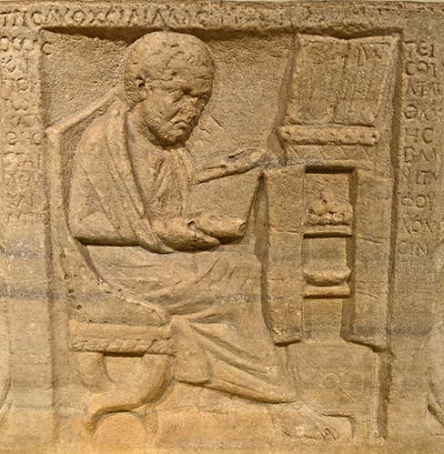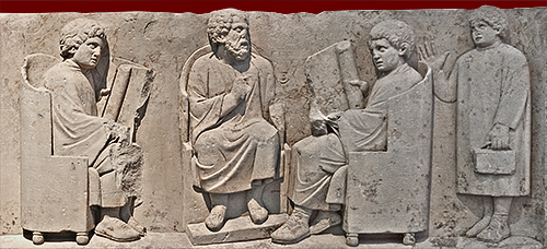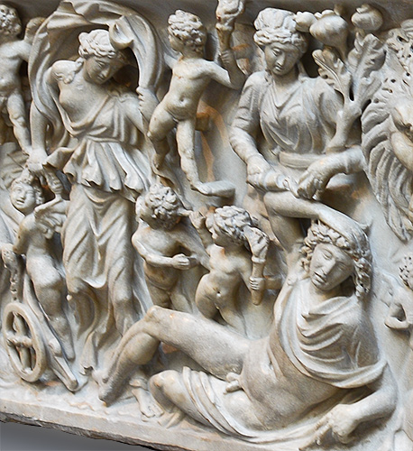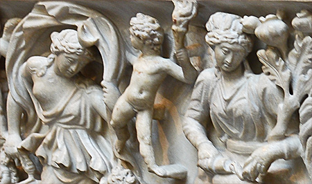back of sarcophagus of Claudia Arria, Roman, from Ostia, c. 220 CE;