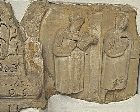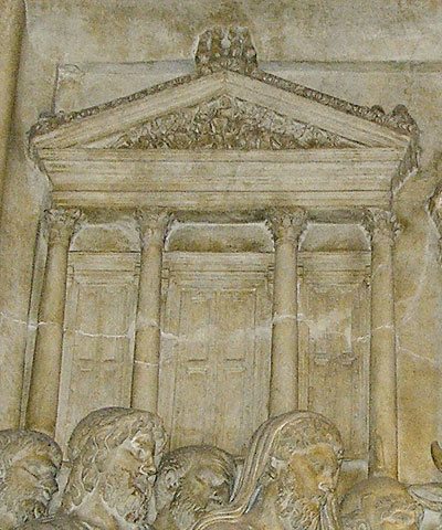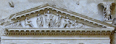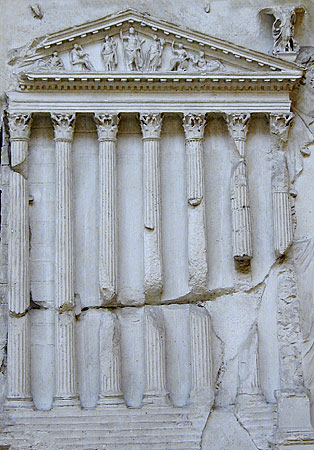 fragment of the cornice of the Temple of Mercury, Forum, Thuburbo Maius (ancient Thuburnica) in Tunisia, erected 211-217 CE