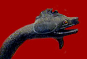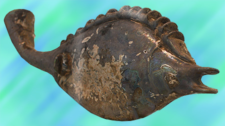 lion heads at each end whose mouths would be spouts for the liquid on a real lenos.