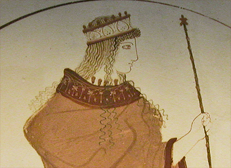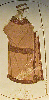 The empress is shown as an older woman, with her characterisztic nodus hairstyle.
