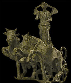 chariot over another reclining female figure representing the earth, with a descending motion indicated by the Cupid leading the chariot with downward-pointing torch.