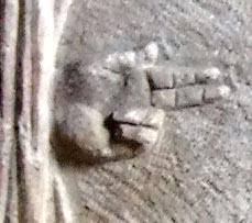 arm of a woman carrying a casket containing 40 aureii and 180 denarii; she was killed along