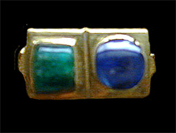linked, hollow hemispheres; this type of jewelry was apparently invented by the