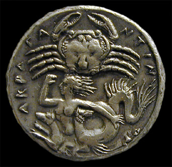 silver coin of Agrigentum, Sicily: fifth century BCE