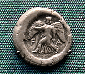 thunderbolt; the Greek letters FA refer to the city of Elis, which controlled