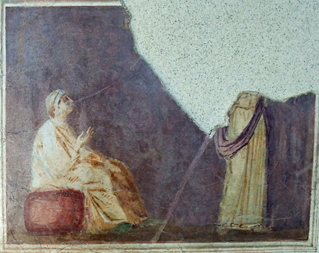 of Medea with sword, about to kill her two sons; the paedagogus watches in the background. From the House of the Dioscouri, Pompeii. 1st century CE. Naples, Archaeological Museum. Credits: Ann Raia, 2009.
