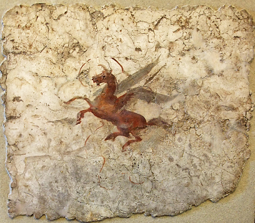 Partial scene of a horse flying in the clouds. From the Roman domus at the Villa Farnesina, end 2nd century CE. Rome, Museo Nazionale Romano. Credits: Ann Raia, 2009.