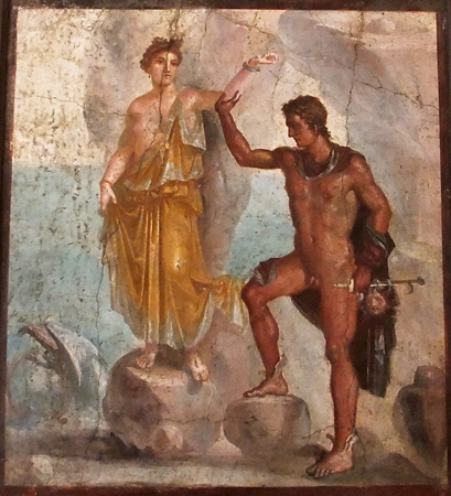 of Perseus releasing Andromeda from the cliff after killing the sea monster. From the House of the Dioscouri, Pompeii. 1st century CE. Naples, Archaeological Museum. Credits: Ann Raia, 2009.