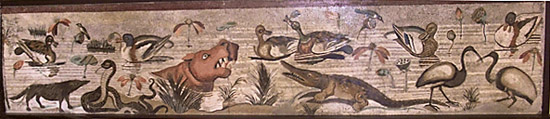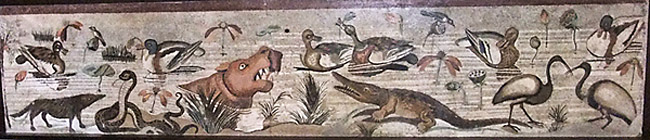 Wildlife and plants along the banks of the Nile river (small). From the House of the Faun, Pompeii. From 120-end 1st century BCE. Naples, Archaeological Museum. Credits: Ann Raia, 2009.