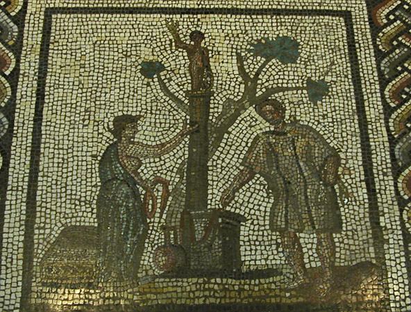 Sacrifice to Taranus: floor mosaic of stone, marble, glass