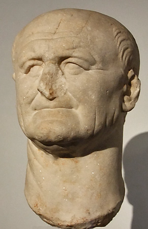 Peg holes in the head and neck indicate it once had a wreath; neck formed for insertion into a statue. From Naples(?). Probably c. 79 CE. Copenhagen: Ny Carlsberg Glyptotek (photo taken in Colosseum, Divus Vespasianus exhibit). Credits: Ann Raia, 2009.