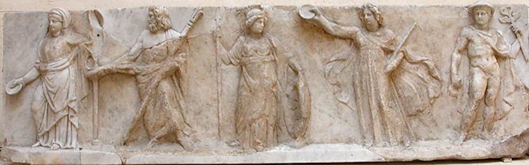 Neptune, Apollo, Cybele, Luna, Mercury, Hephaistos, Helios, Mars, Venus, Hercules, Bacchus.