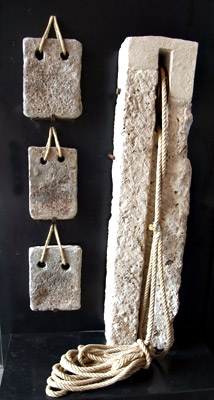 lead counter-weights and Travertine pillar, Roman, third century CE
