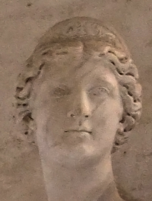 Dedicated by her husband Lucius Annius Festus (inscription). Portrait of 27 year old Tyche in a Flavian hairstyle. This stele stood inside or outside a tomb where her remains were buried (side view 1; side view 2). CIL VI.16054. Rome, 90-100 CE.