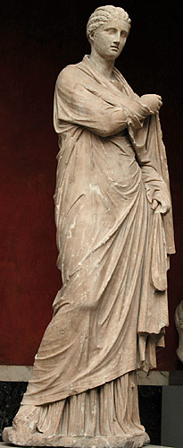 Statue of the goddess Artemis with her dog, dressed for the hunt, from a Greek original of the 4th century BCE. From Tivoli, Villa D'Este. Rome, Capitoline Museums. Credits: Ann Raia, 2009.