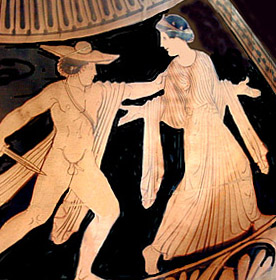 | Clytemnestra was the daughter of Tyndareus, sister of Helen, and wife of Agamemnon. When Agamenon returned to Mycenae from the Trojan War, she (or she and her lover Aegisthus) killed him and the Trojan princess Cassandra whom Agamennon had brought with him from Troy. Her son Orestes eventually returned to Mycenae and murdered his mother to avenge the death of his father. A central figure in Aeschylus' tragedy Agamemnon, she is also found in the works of other major classical Greek writers as well as in paintings and sculpture since the sixth century BCE. |