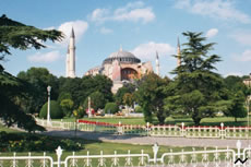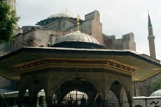 in the courtyard of the Hagia Sophia in Constantinople (Istanbul).