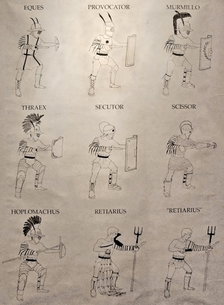 Types of Gladiators: There were many categories of gladiators, who were distinguished by the kind of armor they wore, the weapons they used, and their style of fighting. Most gladiators stayed in one category, and matches usually involved two different categories of gladiator. The following examples will illustrate some of the different types of gladiators which modern scholars have identified: