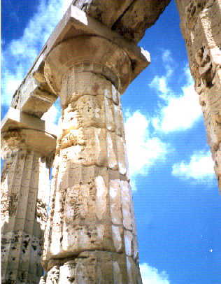 Doric columns Temple of Concord, Sicily, showing traces of plaster in column flutes.