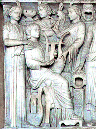 left side: seated lyre player with muses. Vatican Museum, Rome. Credits: