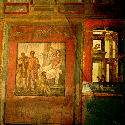 architectural scene and Hercules strangling serpents. Pompeii. Credits: Lisanne
